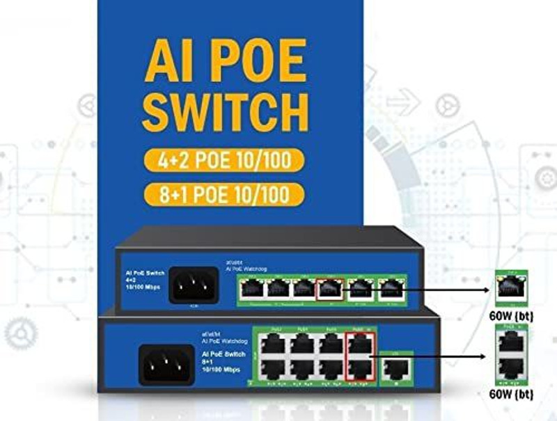 HANUTECH AI Featured PoE Switch Combo (4+2 PoE /8+1 PoE) 10/ ...