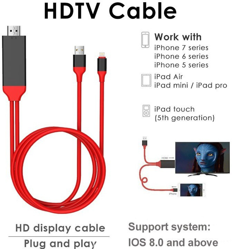 Wifton HDMI Cable 2 m Plug and Play For 8 Pin Lightning To H ...
