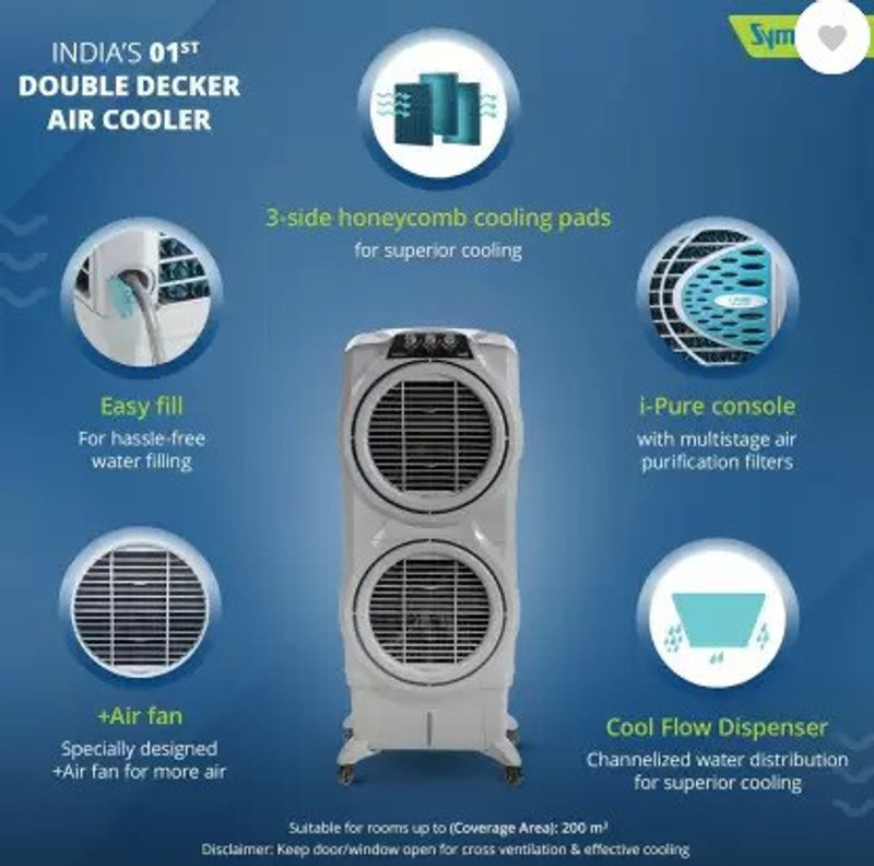 Symphony 40 L Room/Personal Air Cooler(Light Grey, Sumo 40 X ...