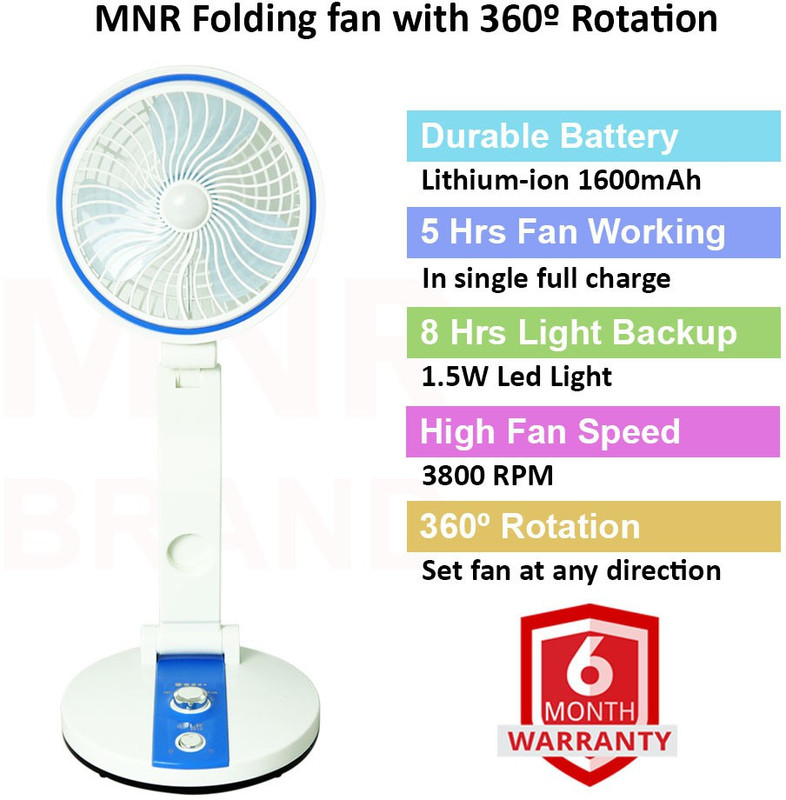 MNR Brands Rechargeable Folding Fan 1100 mm 3 Blade Table Fa ...