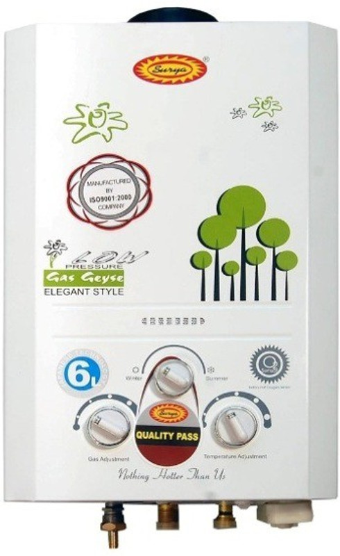 SURYA 6 L Gas Water Geyser (Surya 6L HBE-159-10, White, Red)