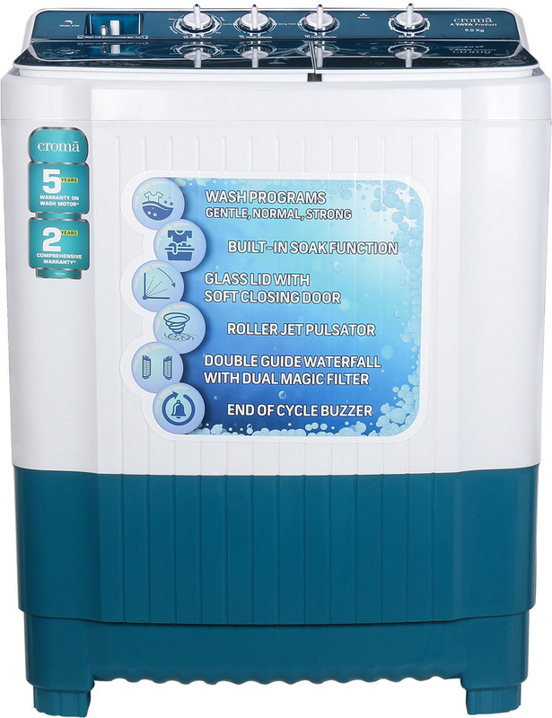 Croma 9 kg Semi Automatic Top Load Blue, White(CRAW2253)