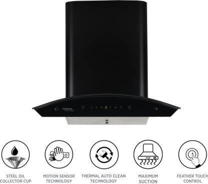 Hindware Oasis Black 60 Cm Wall Mounted Chimney For Kitchen, ...