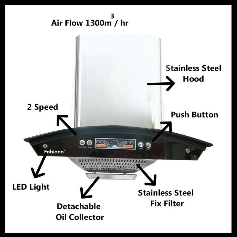 Fabiano GALAXY SS 90cm 1200M3/HR Suction Push Button Panel f ...