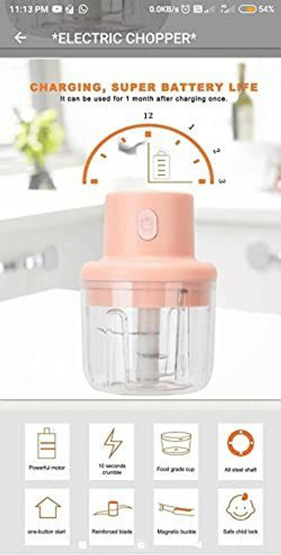 Home Puff 250ml Pink Electric Chopper, Recharagable 3 Sharp ...