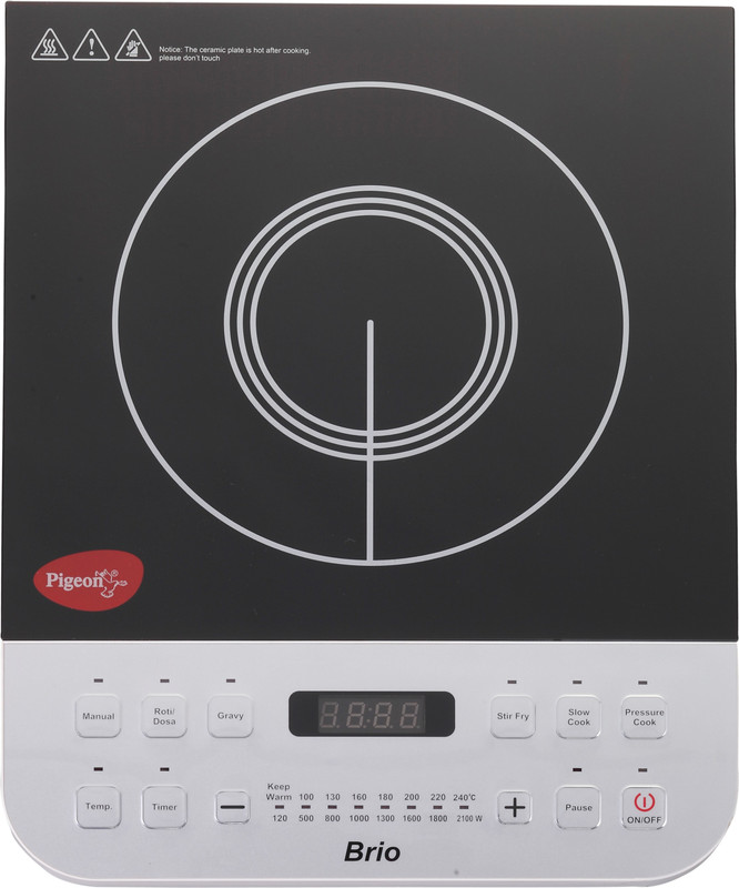 Pigeon Brio-2100W Induction Cooktop(Silver, Black, Push Butt ...