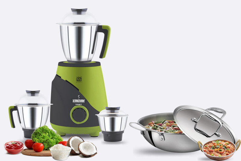 KANCHAN Triset 750 Watts Mixer Grinder with Stainless Steel ...