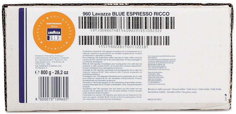 Lavazza Blue Espresso Ricco-100Pcs Roast & Ground Coffee ...