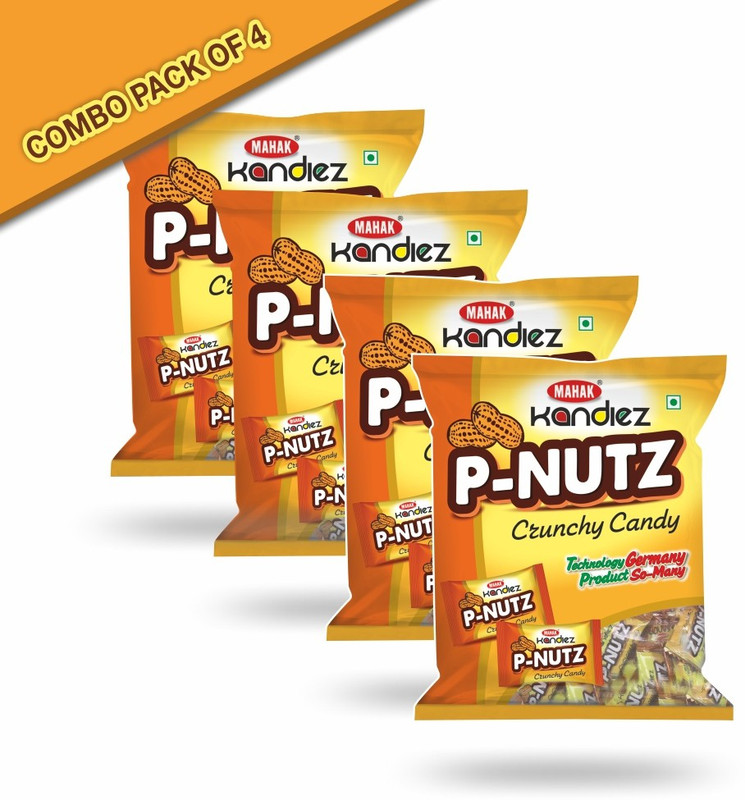 Mahak P-Nutz Crunchy Candies Pouch Pack of 4/ Center Nut Bla ...