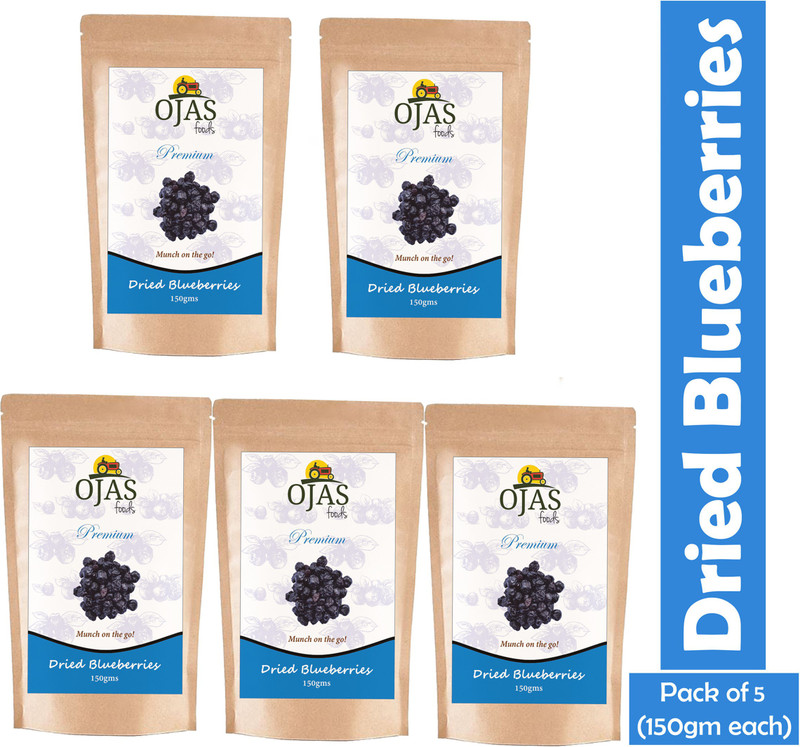 OJAS FOODS Dried Blueberries Pack of 5 (150gm each) Blueberr ...