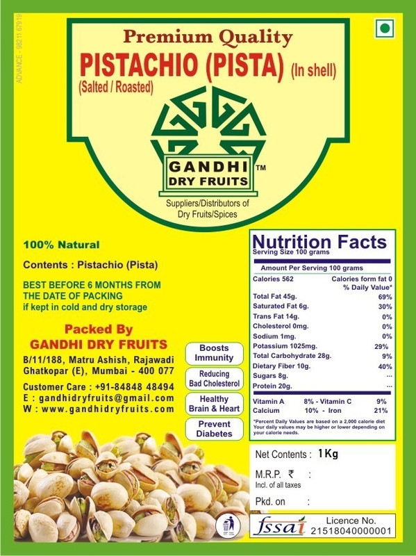 Gandhi Dry Fruits (Pista) Quality 1 Kg Pistachios(1 kg)