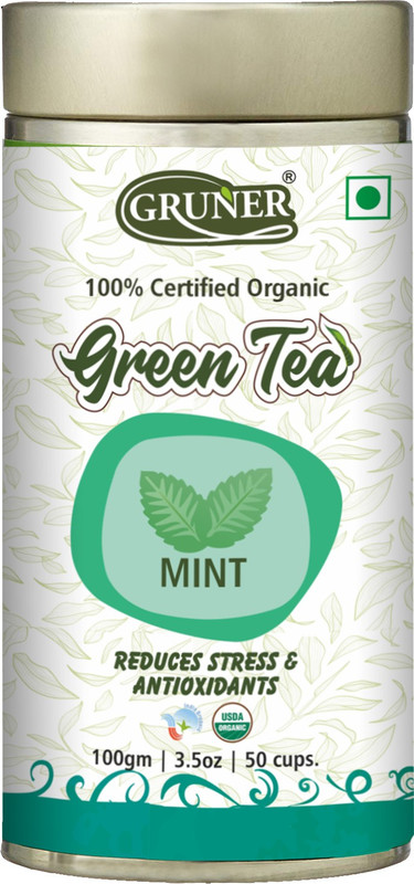 Gruner Mint Flavour Green Tea 100 gm | Mint Green Tea Tin(10 ...