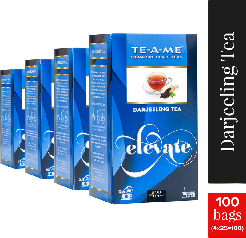 TE-A-ME Darjeeling Pack of 4 (4 X 25 = 100 Tea Bags) Unflavo ...