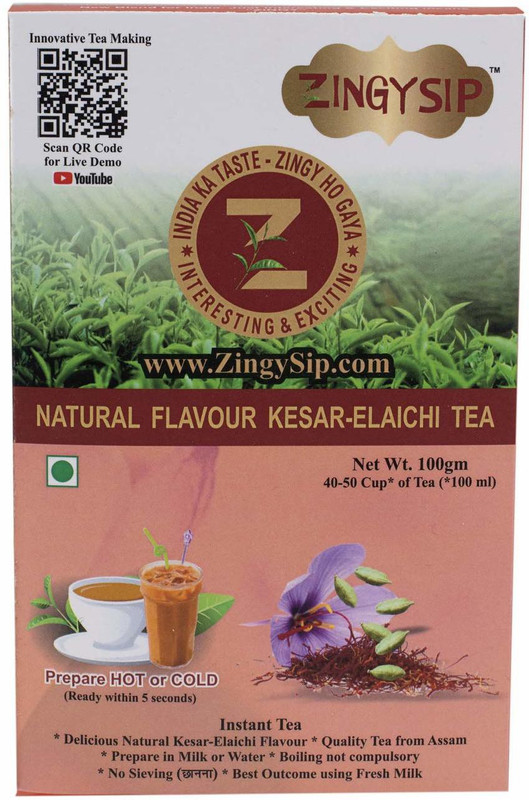 ZINGYSIP Flavored Kesar Elaichi Tea Powder,(50-65cups) Carda ...