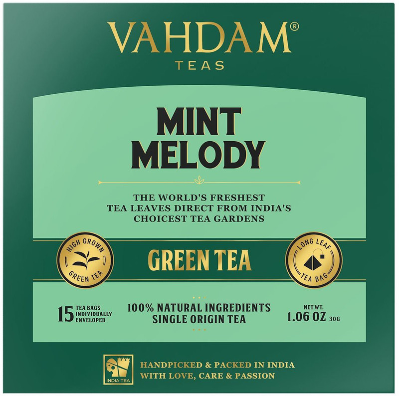 Vahdam Mint Green Tea, (15 Tea Bags) | Mint LONG LEAF Green ...