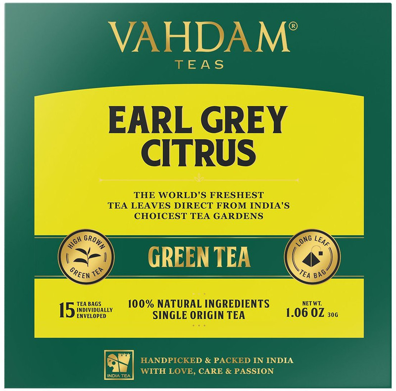 Vahdam Earl Grey Citrus Green (15 Tea Bags), Green Tea Bags ...