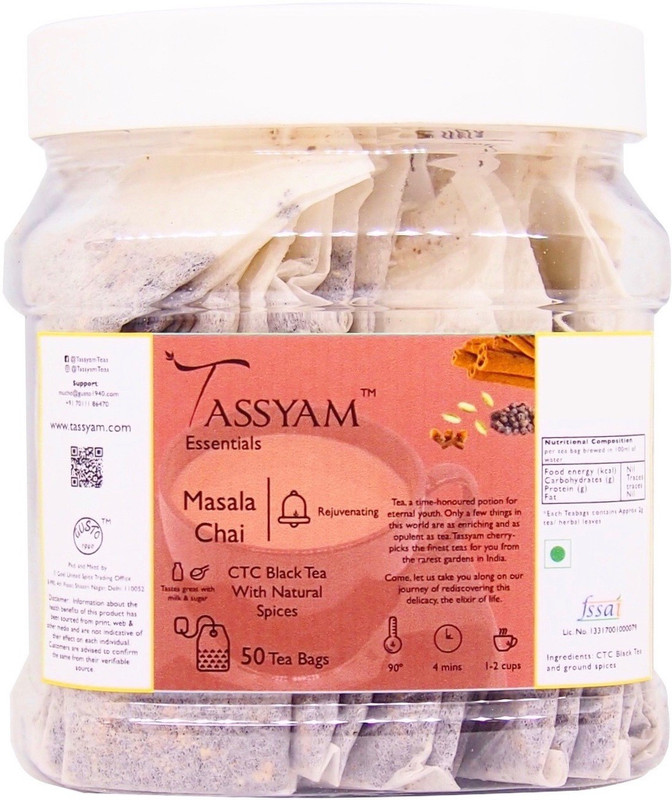 Tassyam Masala Chai | 50 Staple Free Tea Bags Spices Masala ...