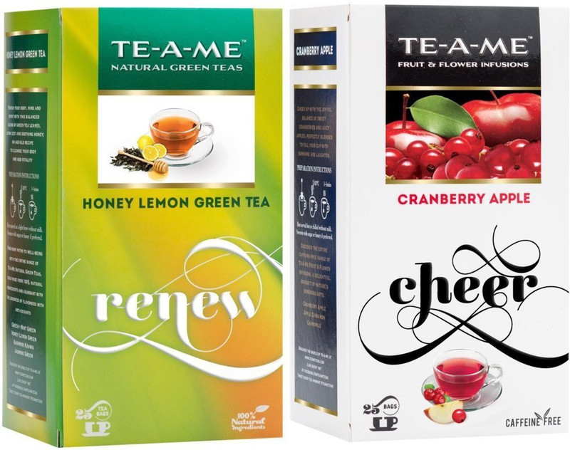 TE-A-ME Fresh Green Tea & Cranberry apple Tea Combo Cran ...
