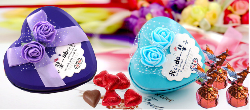Kinoki Purple and Light Blue Metal Heart Shape Chocolate Box ...