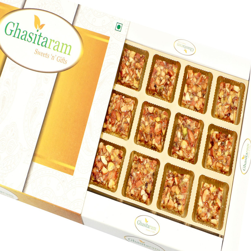 Ghasitaram Gifts Sweets-Dryfruit Almond Barfi in White Box B ...