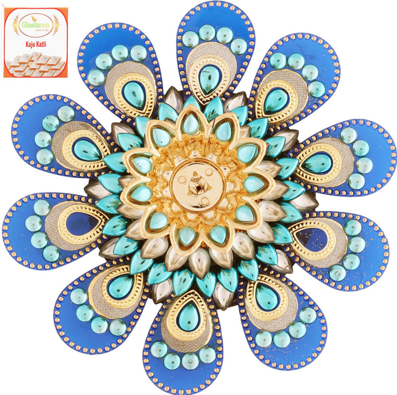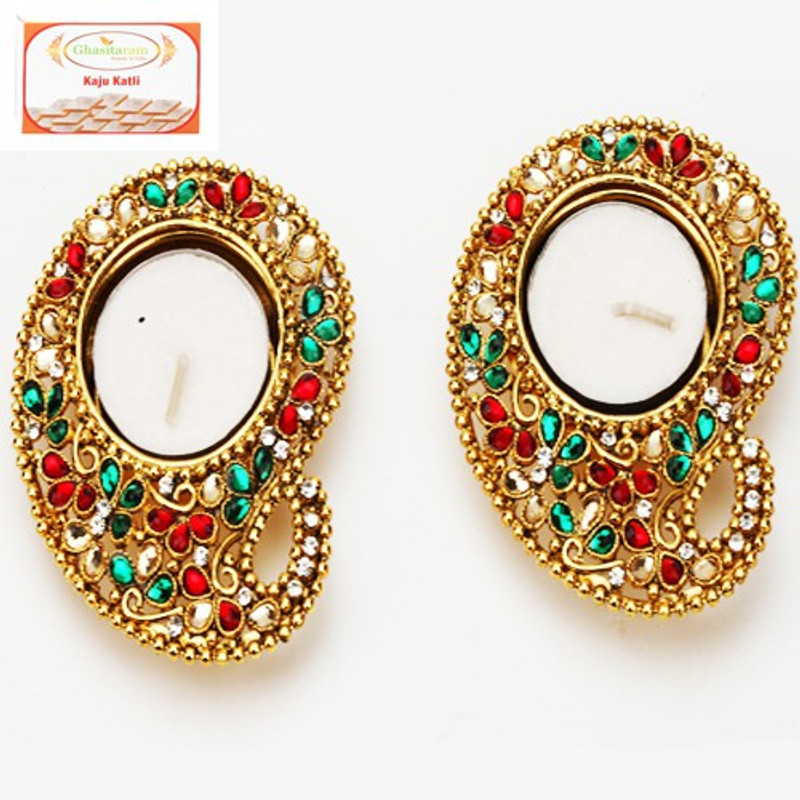 Ghasitaram Gifts Diamond Metal T-Lite with 200 gms Kaju Katl ...