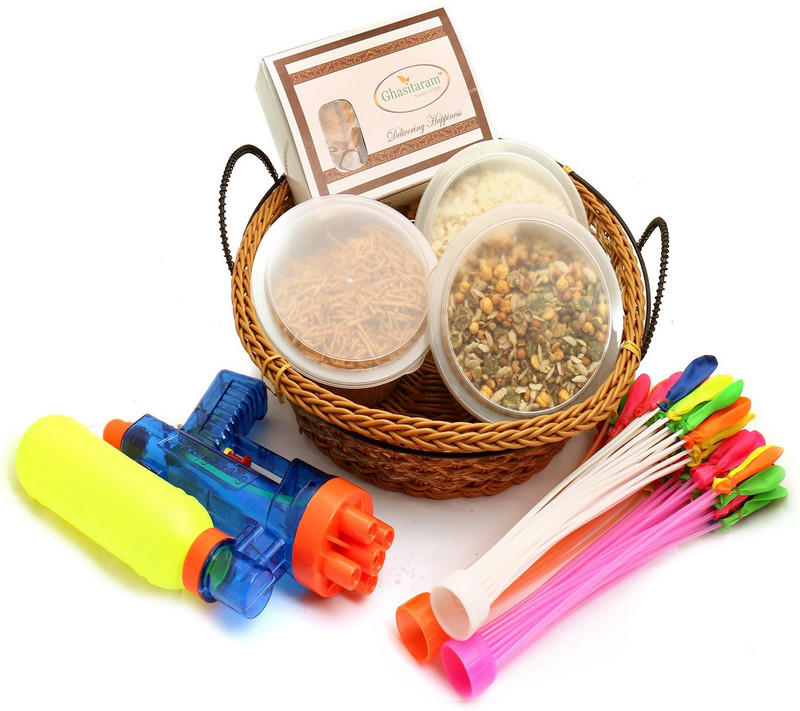 Ghasitaram Gifts Big Cane Basket of Air Fried Gujiyas, Soya ...