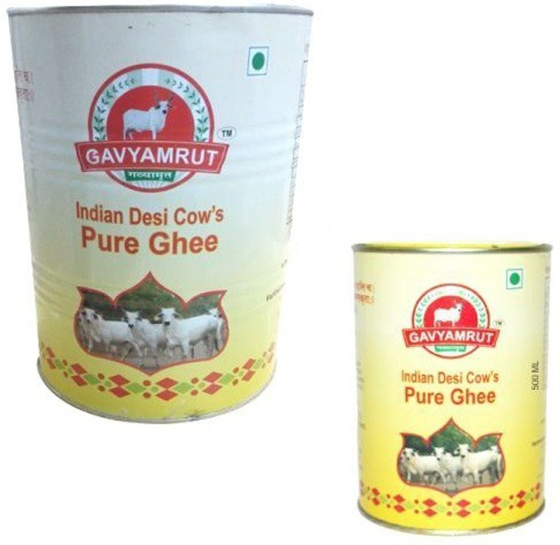 Gavyamrut A2 DESI GHEE PACK OF 2 (500MLX2) 1 kg Tin(Pack of ...