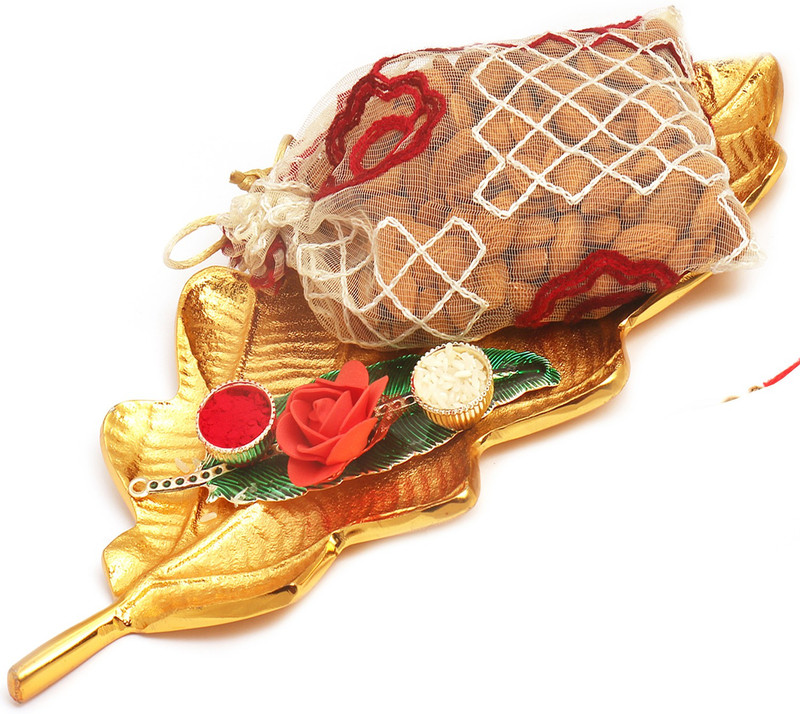 Ghasitaram Gifts Golden Leaf with Green Leaf Roli Chawal Con ...