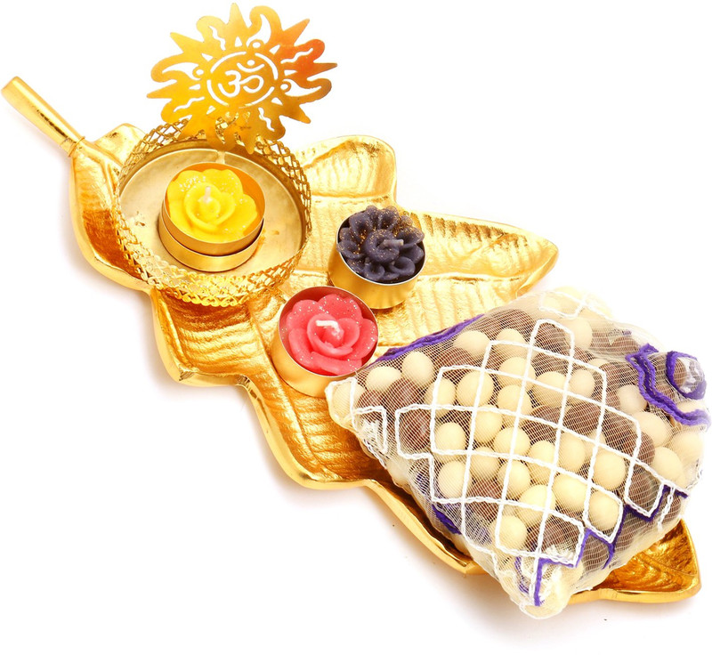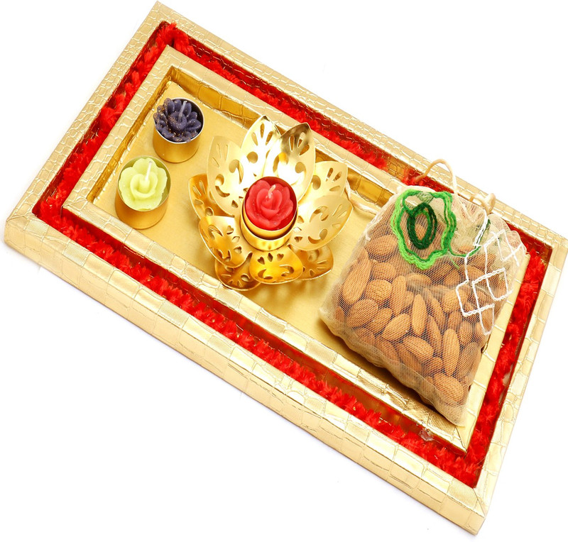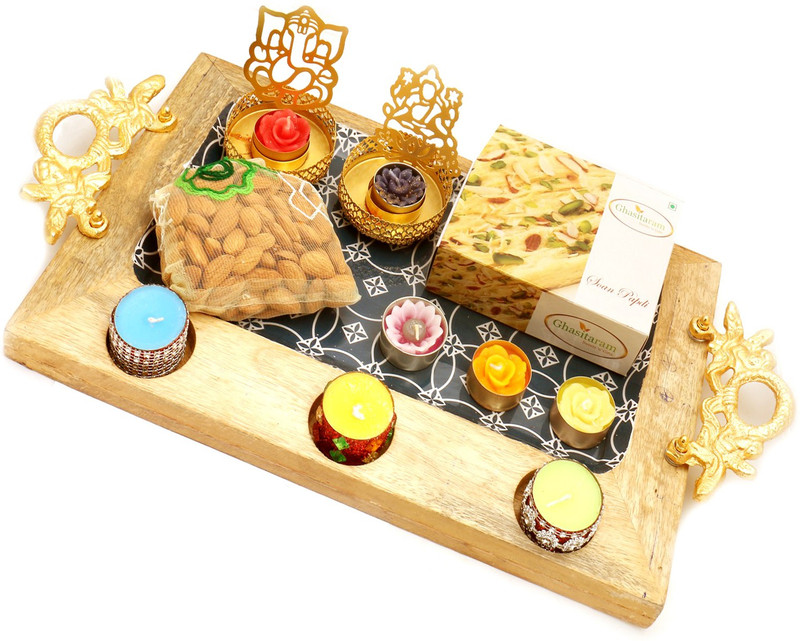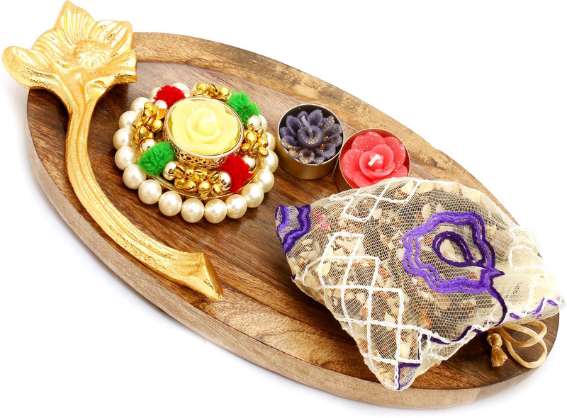 Ghasitaram Gifts Hampers-Wooden Pooja Thali/ Platter with Pe ...