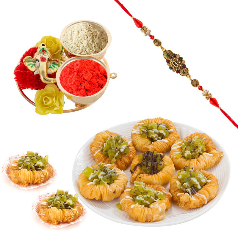 Bikano Kiwi Baklava with Designer Rakhi Combo(1 pair of soan ...