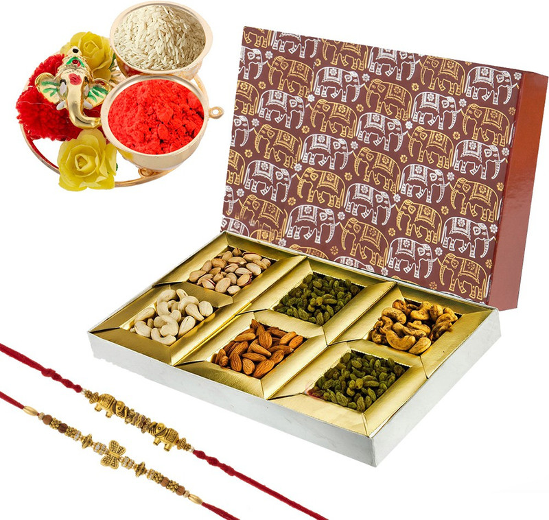 Bikano Rakhi Thali and Dry Fruits Delight with a Set of 2 De ...