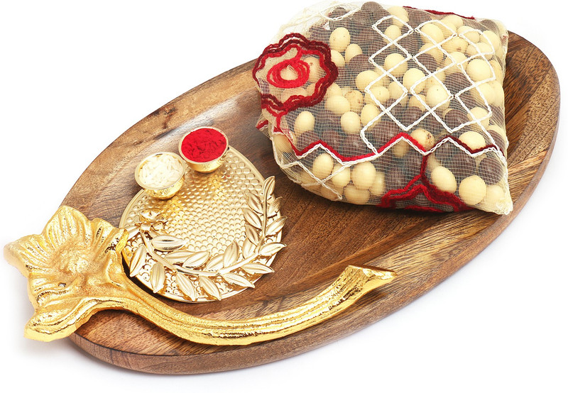 Ghasitaram Gifts Wooden Platter with Pooja Thali and Nutties ...