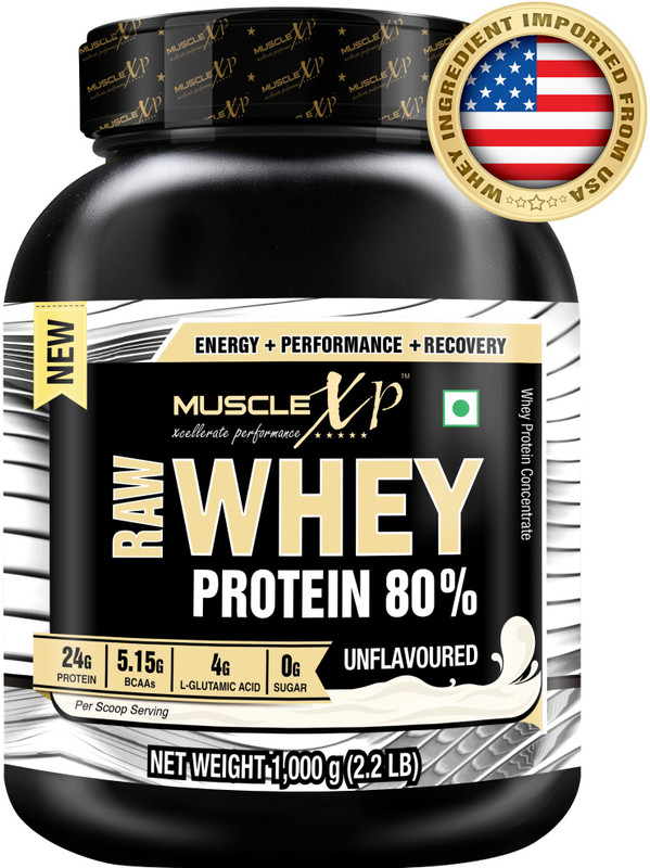 MuscleXP Raw Whey Protein Concentrate 80% Unflavored, 1Kg (2 ...
