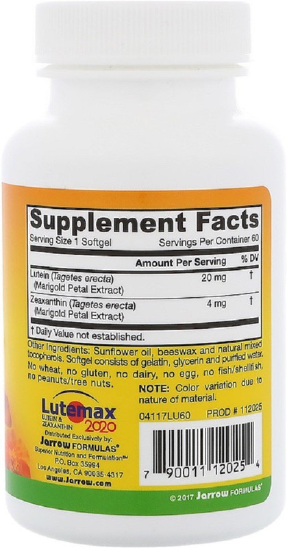 Jarrow Formulas Jarrow Formulas, Lutein, 20 mg,(60 No)
