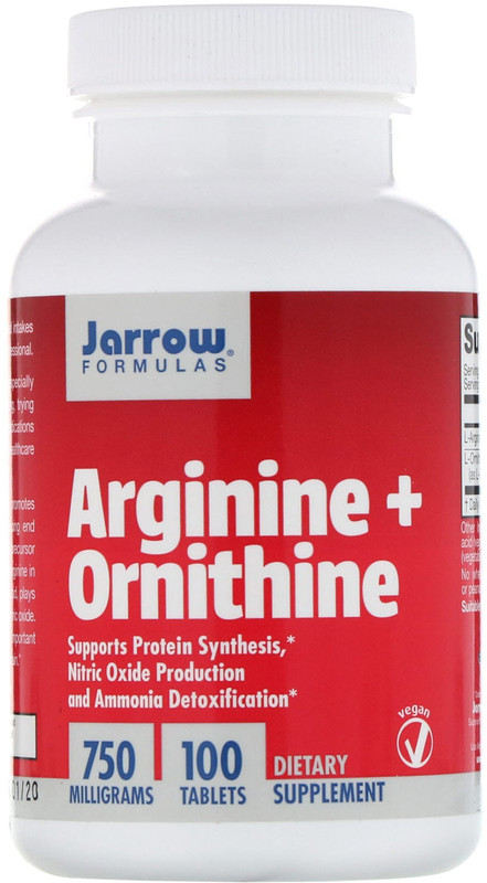 Jarrow Formulas Arginine + Ornithine, 750 mg, 100 Tablets(10 ...