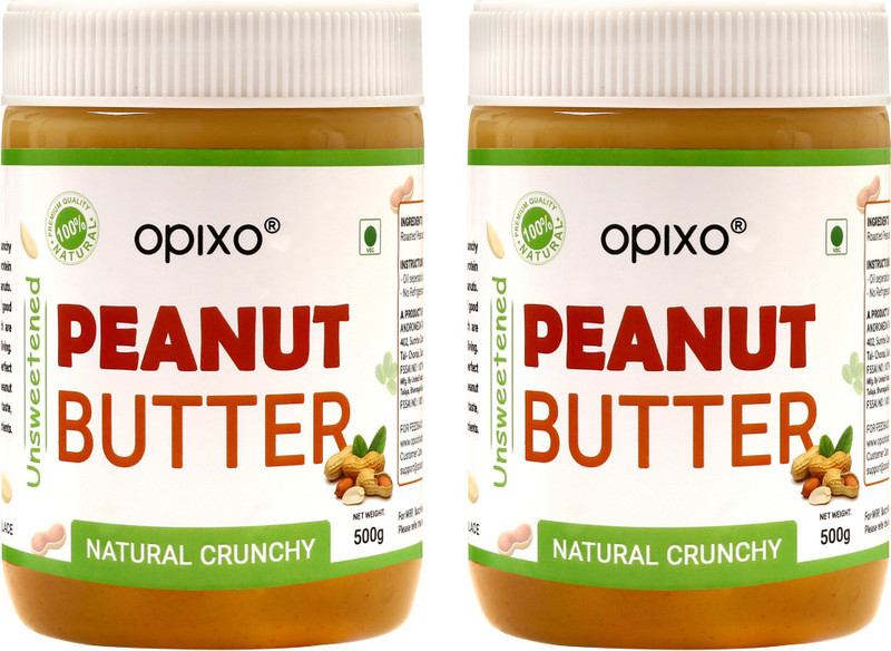 Opixo Natural Crunchy Peanut Butter (500 G + 500 G) (Unsweet ...