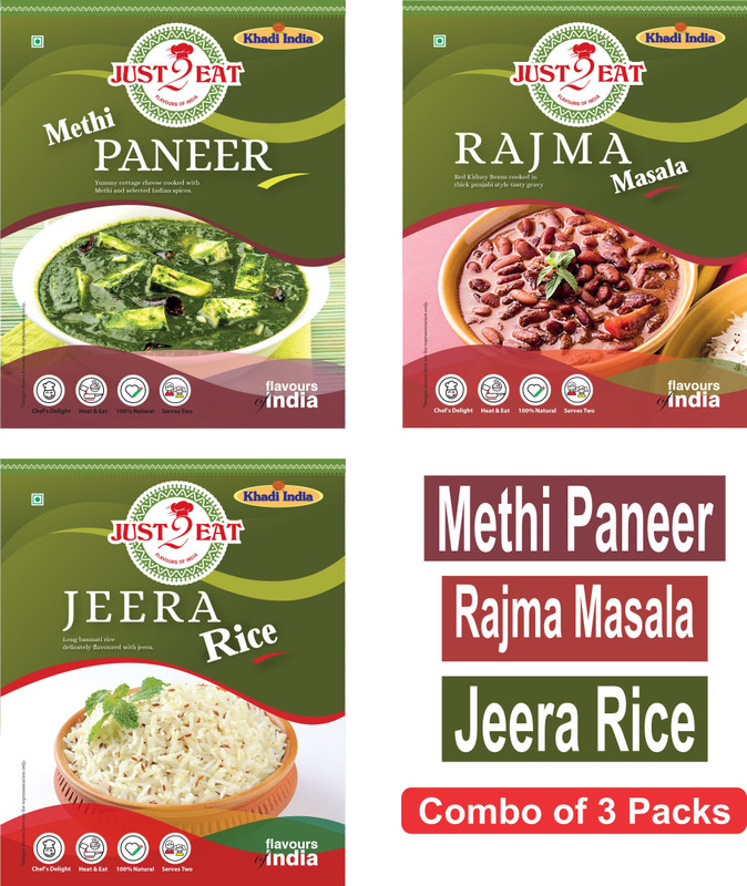 Just 2 Eat Methi Paneer, Rajma Masala, Jeera Rice 850 g