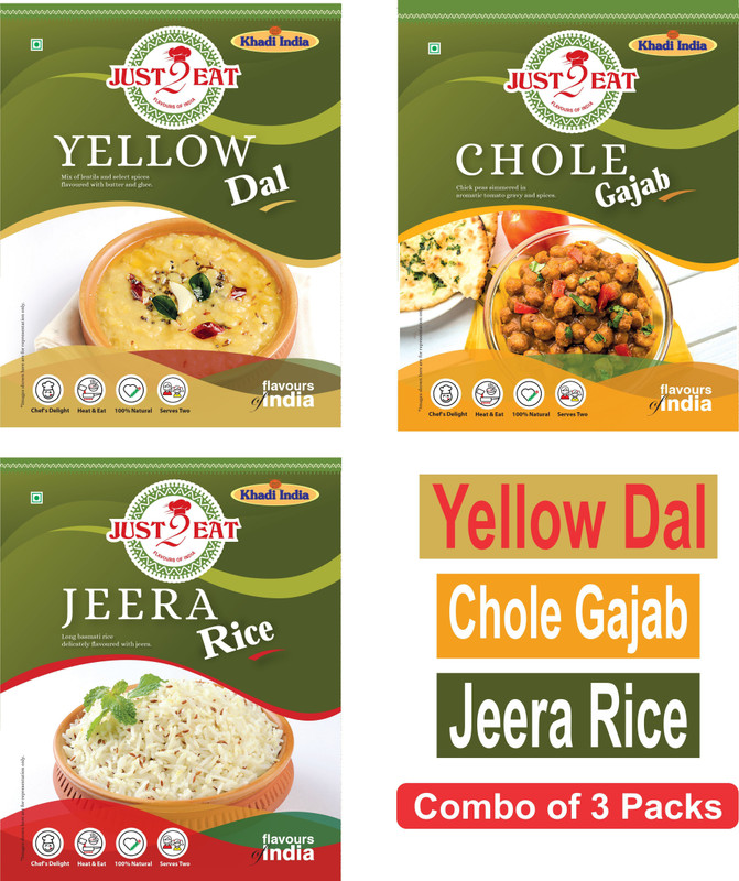 Just 2 Eat Combo Pack of 3, Veg Pulao Aloo Mutter Yellow Dal ...
