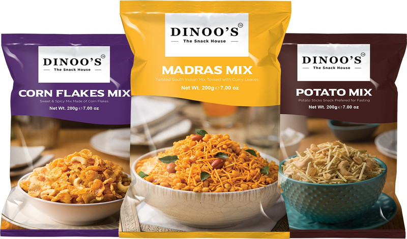 Dinoo’s Combo of Indian Snacks, 200 GMS(Potato Mix, Ma ...