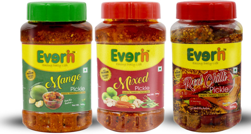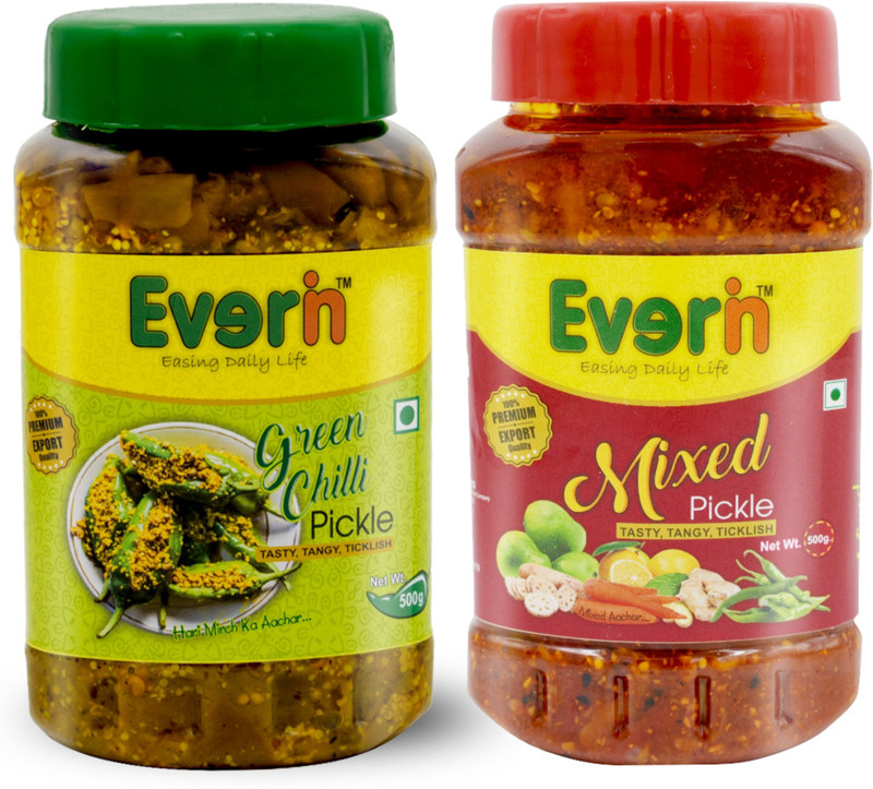 Everin Tasty Tangy and Ticklish Mixed, Green Chilli Pickle(5 ...