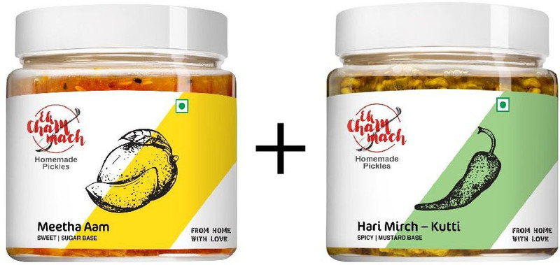 Ek Chammach Homemade Pickles- Meetha Aam and Hari Mirch Kutt ...