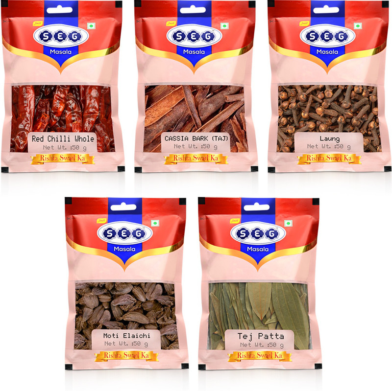 SEG Whole Spice Masala (Pack of 5) )TEJPATTA, RED CHILLI, Ka ...