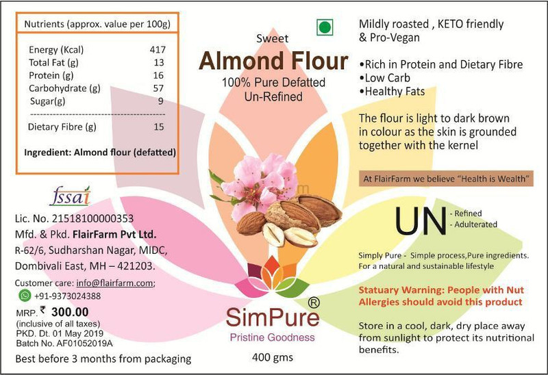 SimPure 100% Pure Defatted Sweet Almond Flour(400 g)