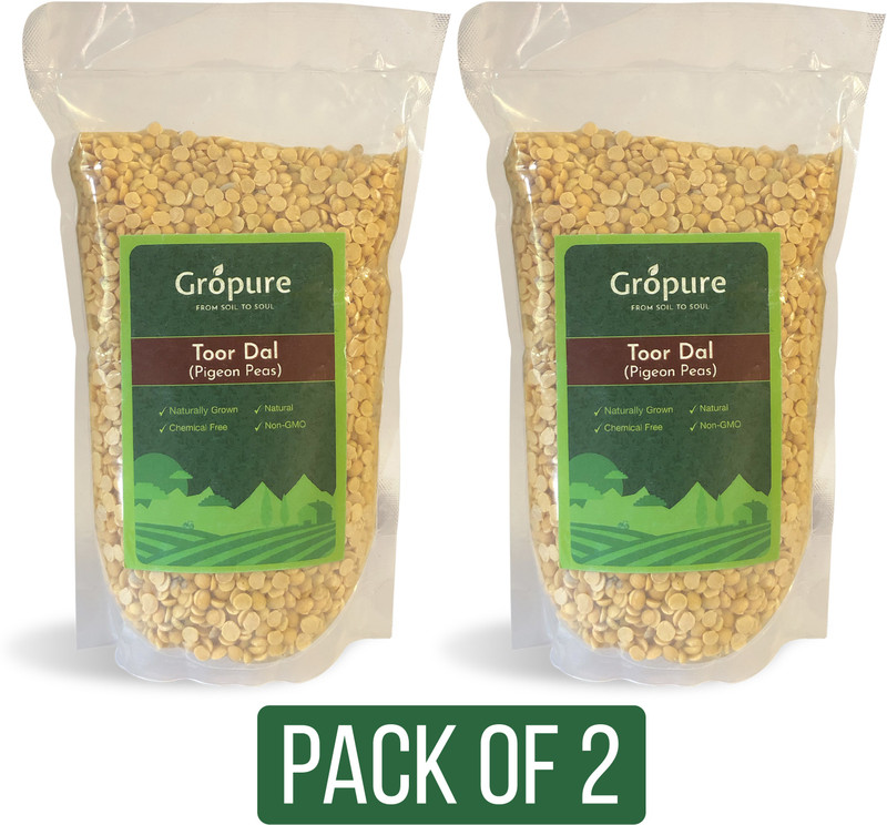 Gropure Organic Unpolished Yellow Toor Dal (Split)(2 kg)