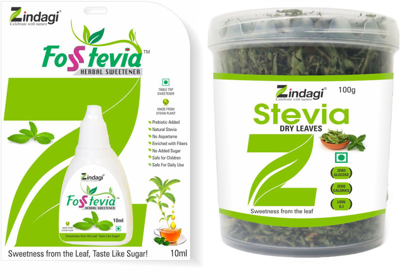 Zindagi Fosstevia Liquid Drops & Stevia Dry Leaves (Comb ...