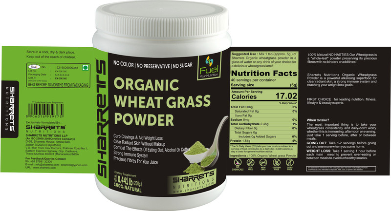 SHARRETS NUTRITIONS ORGANIC WHEAT GRASS POWDER(200 g)