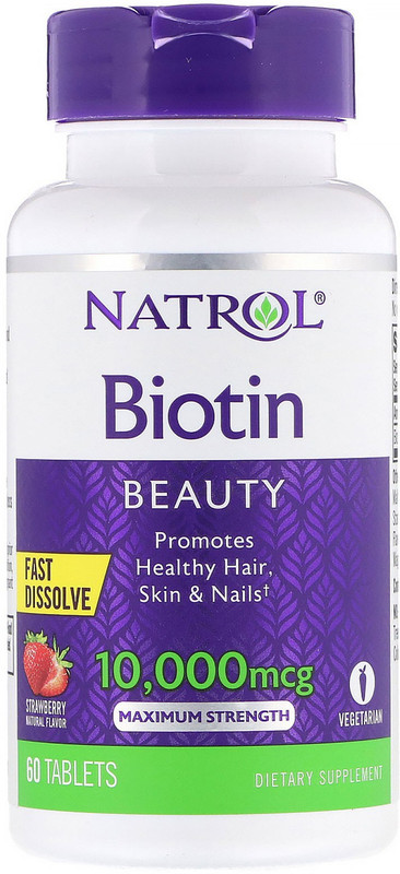 Natrol Biotin, Maximum Strength, Strawberry, 10,000 mcg, 60 ...