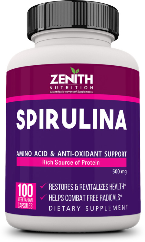 Zenith Nutrition Spirulina 500mg – 100 Veg Capsules | ...
