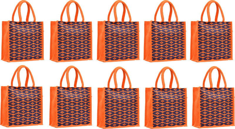 AGGDA Orange Diamond printed Jute Gift Bags for Birthdays (P ...
