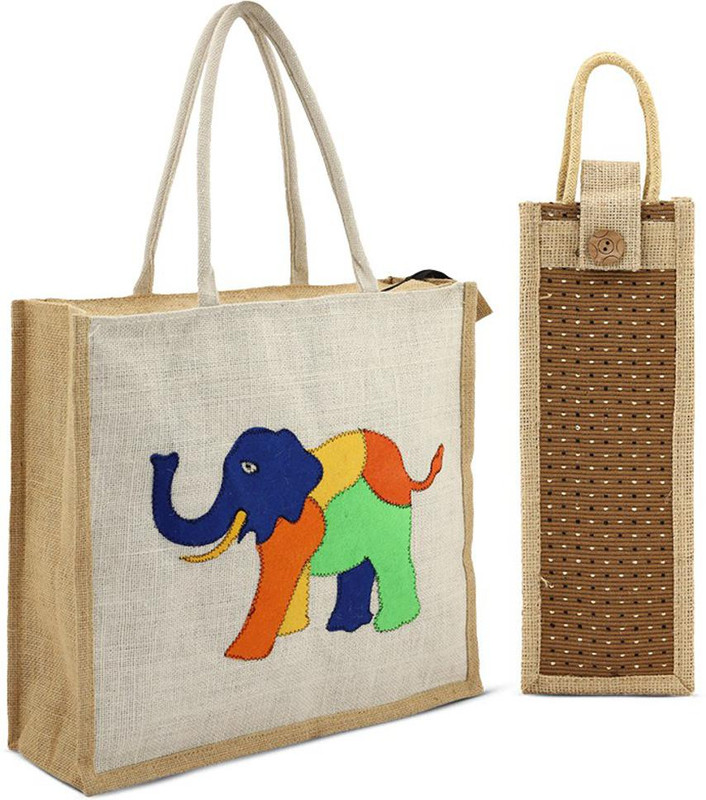 asian JUTE-ELEPH-BTLHLDRcBGE-2 Multipurpose Bag(Beige, 20 L)